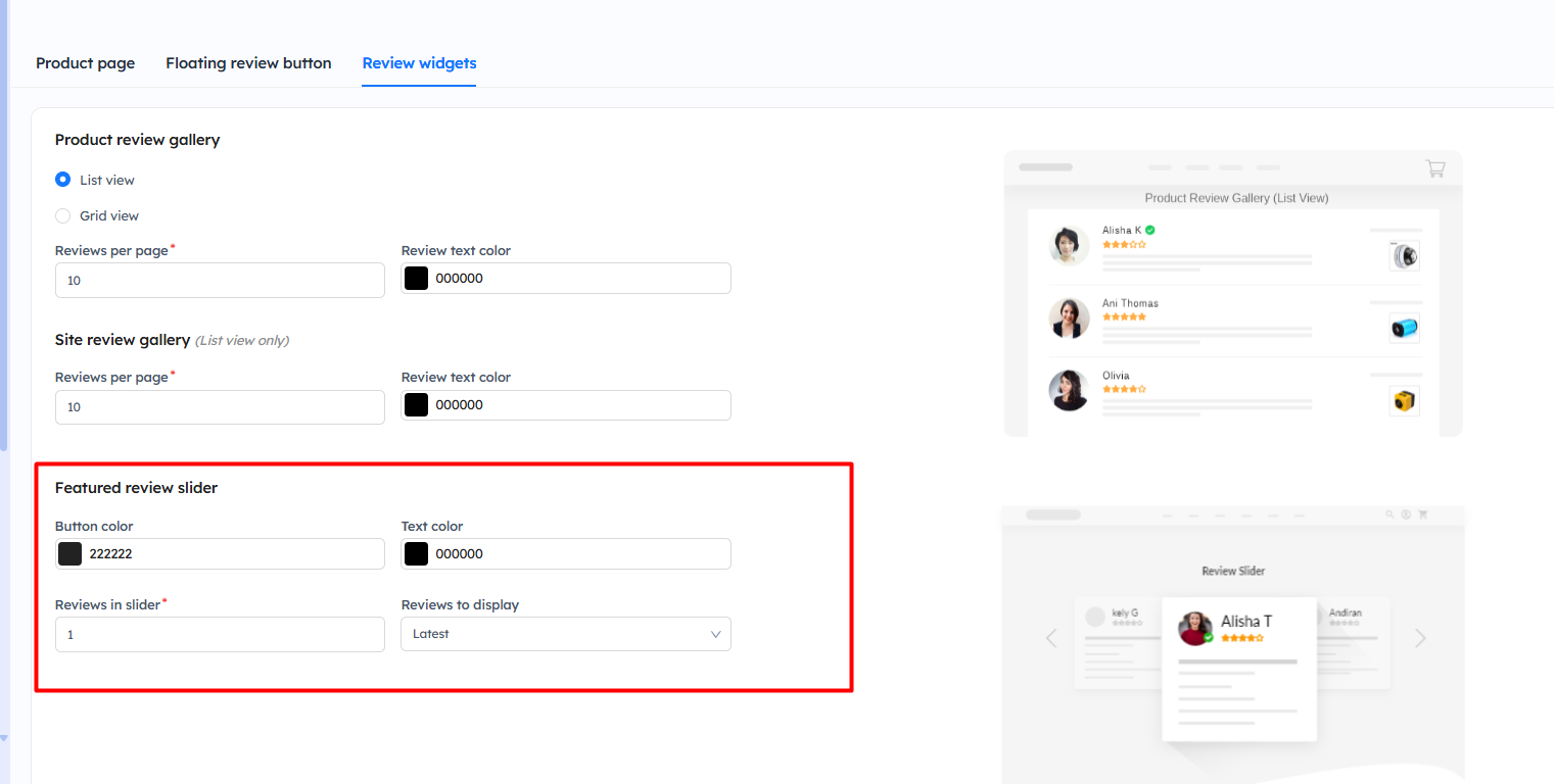 A Review Slider allows you to showcase customer feedback in a dynamic and visually engaging format on your store. By setting up a review slider, you can highlight selected reviews, improve social proof, and capture visitors’ attention as they browse. This feature helps present positive customer experiences in a compact, interactive way, making it easier for potential customers to build trust and make informed purchasing decisions.