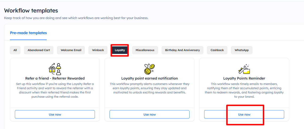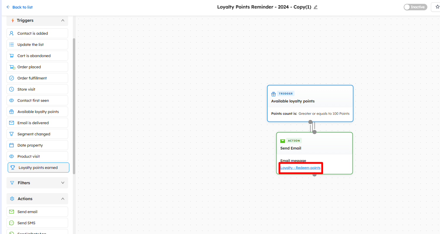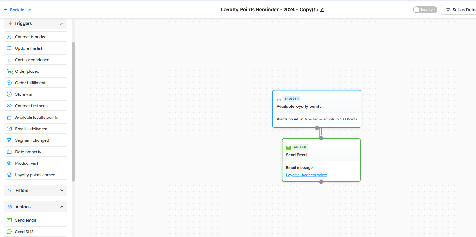 Setup a Loyalty Point Reminder in Workflow Automation