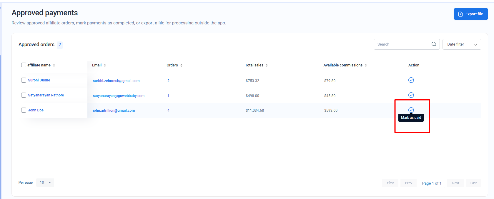How did the store owner approve the request of the affiliate?