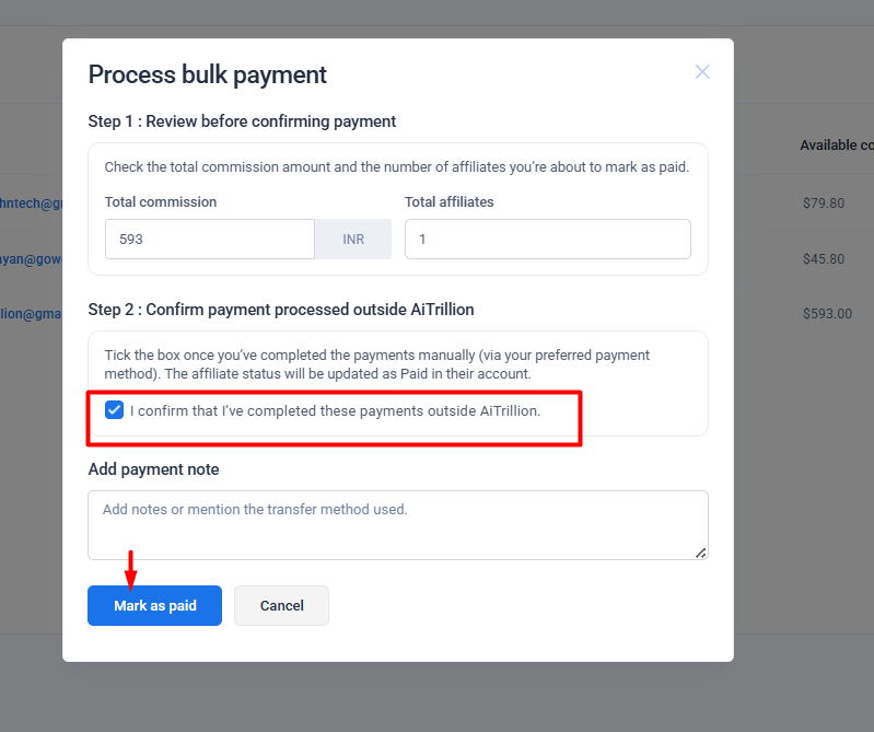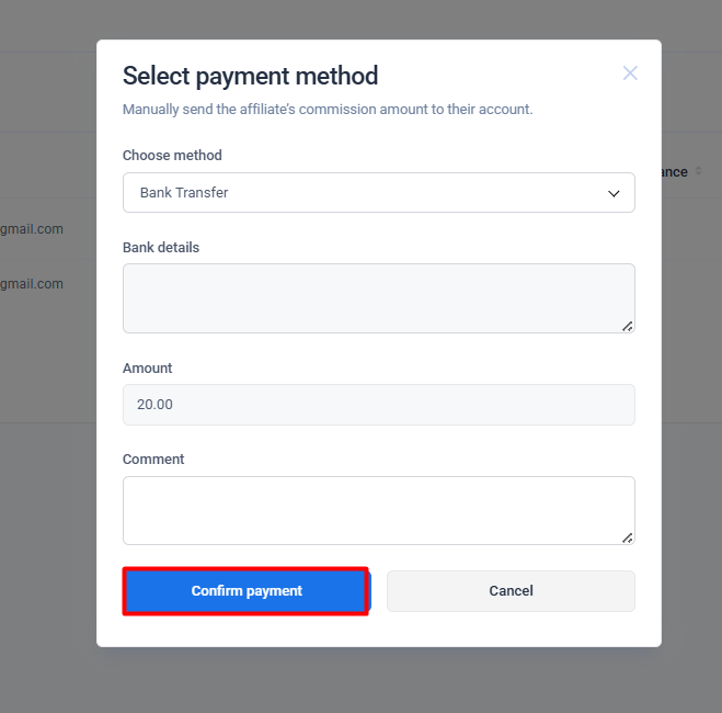 A withdrawal is a process of transferring money earned through the affiliate program to the affiliate's bank account or another payment method.
