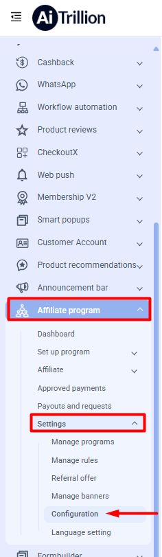 Step 3: Click on Affiliate Settings.