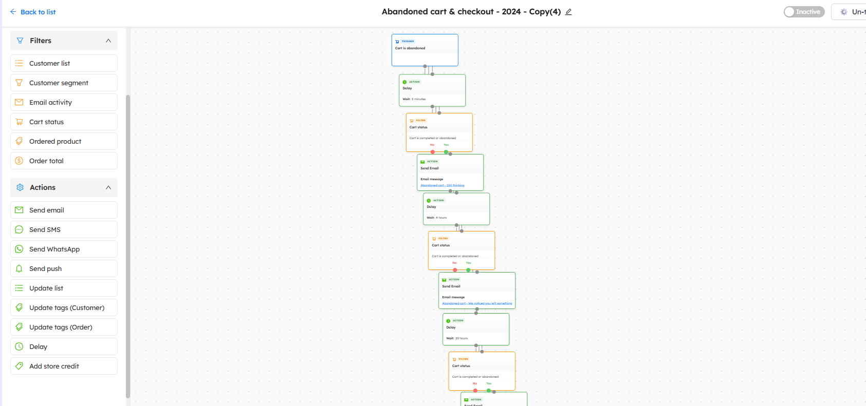 Setup an Abandoned cart & checkout series in Workflow Automation