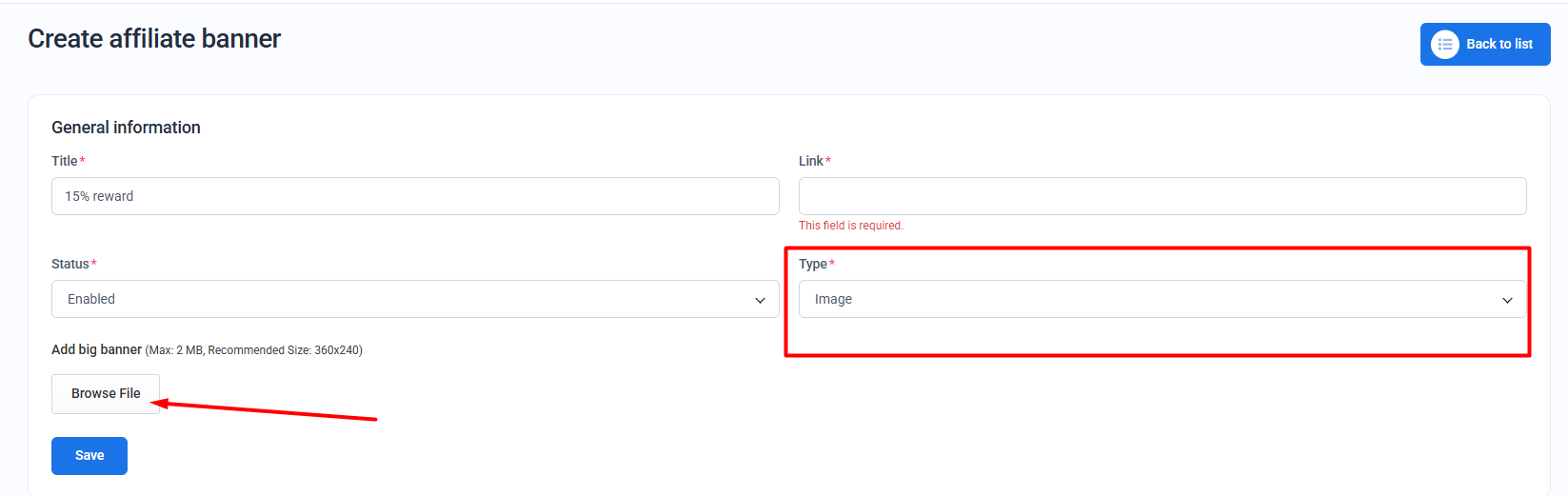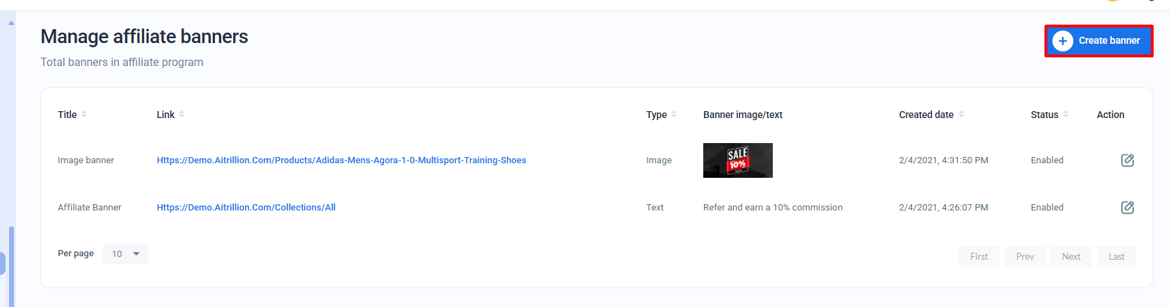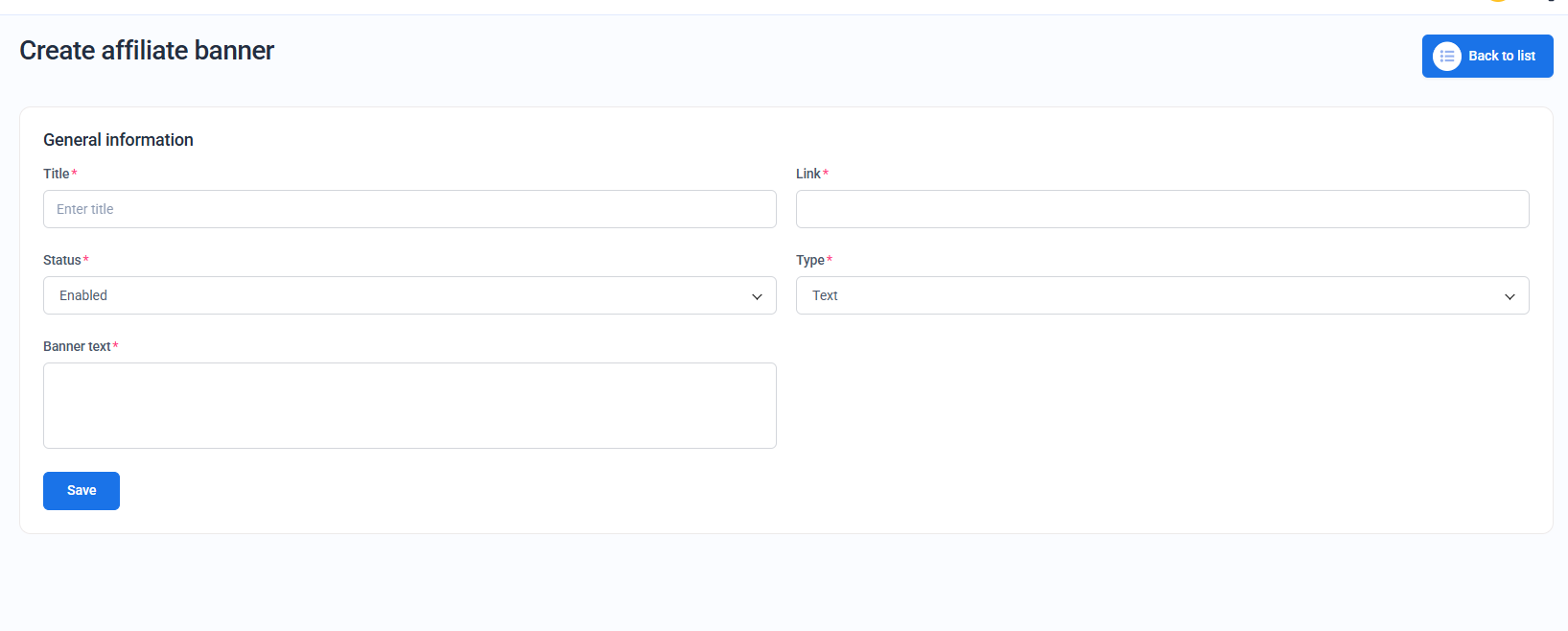 Tip: Use descriptive titles so affiliates can easily recognize the purpose of each banner.