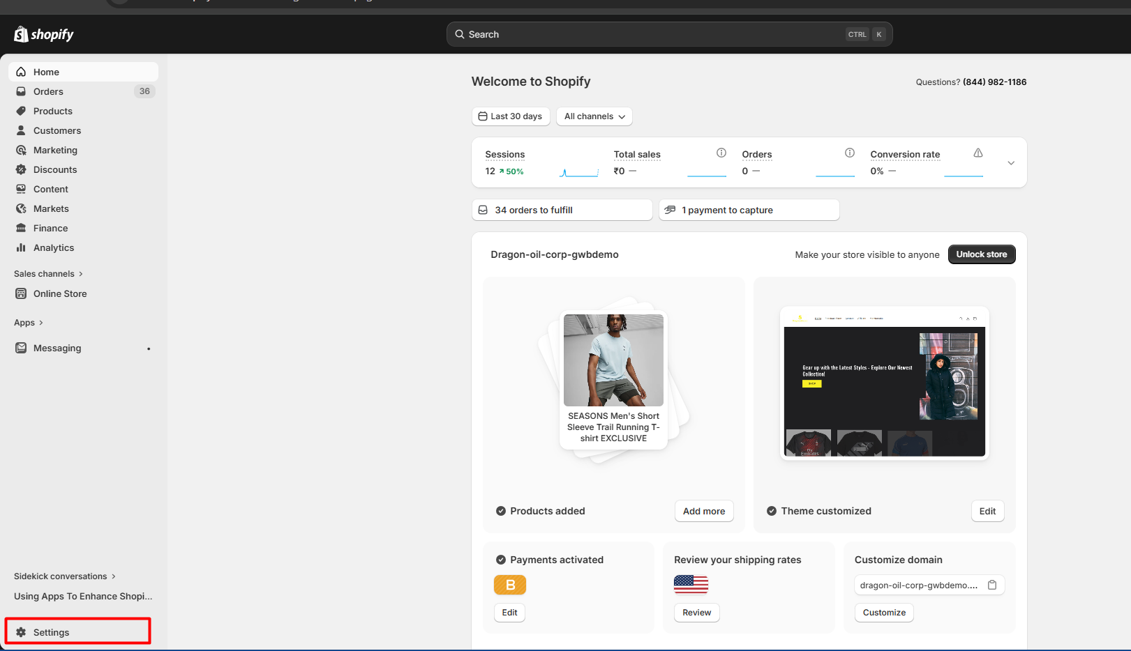 Step 1: Go to Shopify admin >> click on the Settings tab.