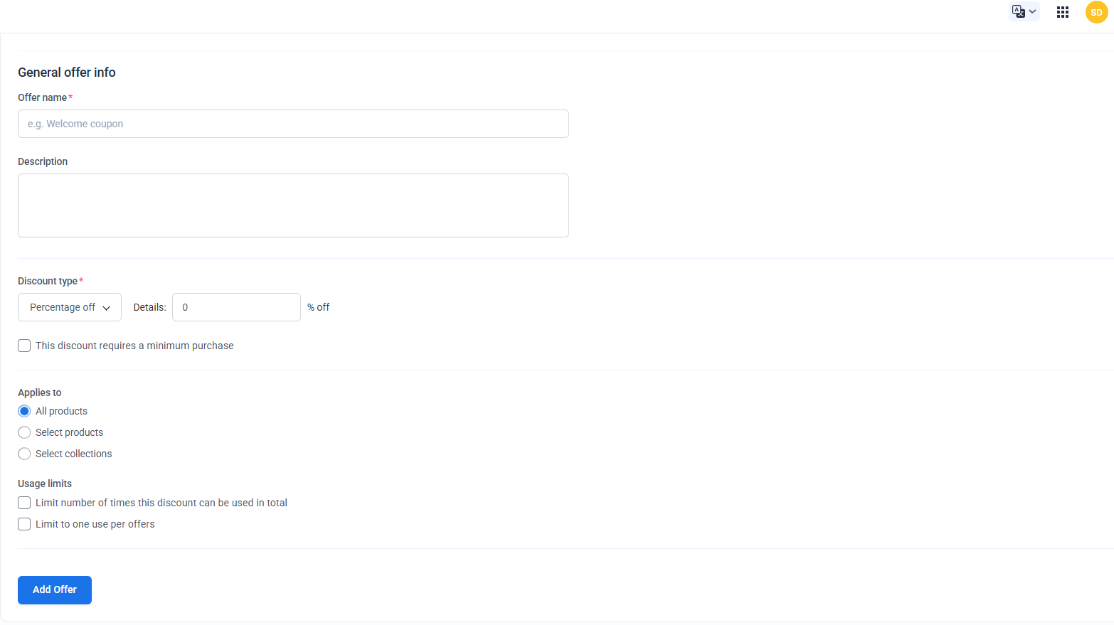 Provide a short summary or details about the offer. Example: “Get 10% off on your first order when referred by a friend.” This section is optional but recommended for clarity when managing multiple offers.