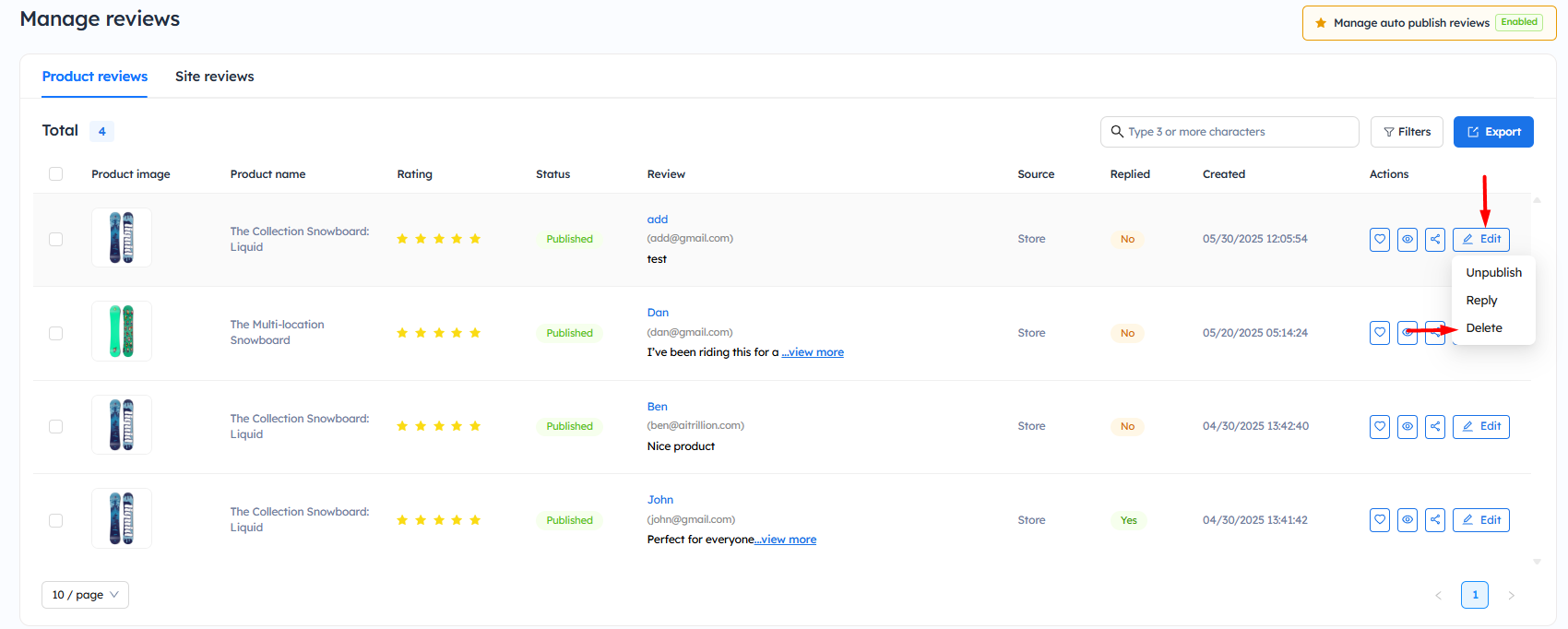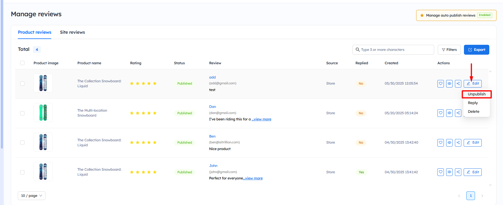 Unpublish Reviews from Your Store