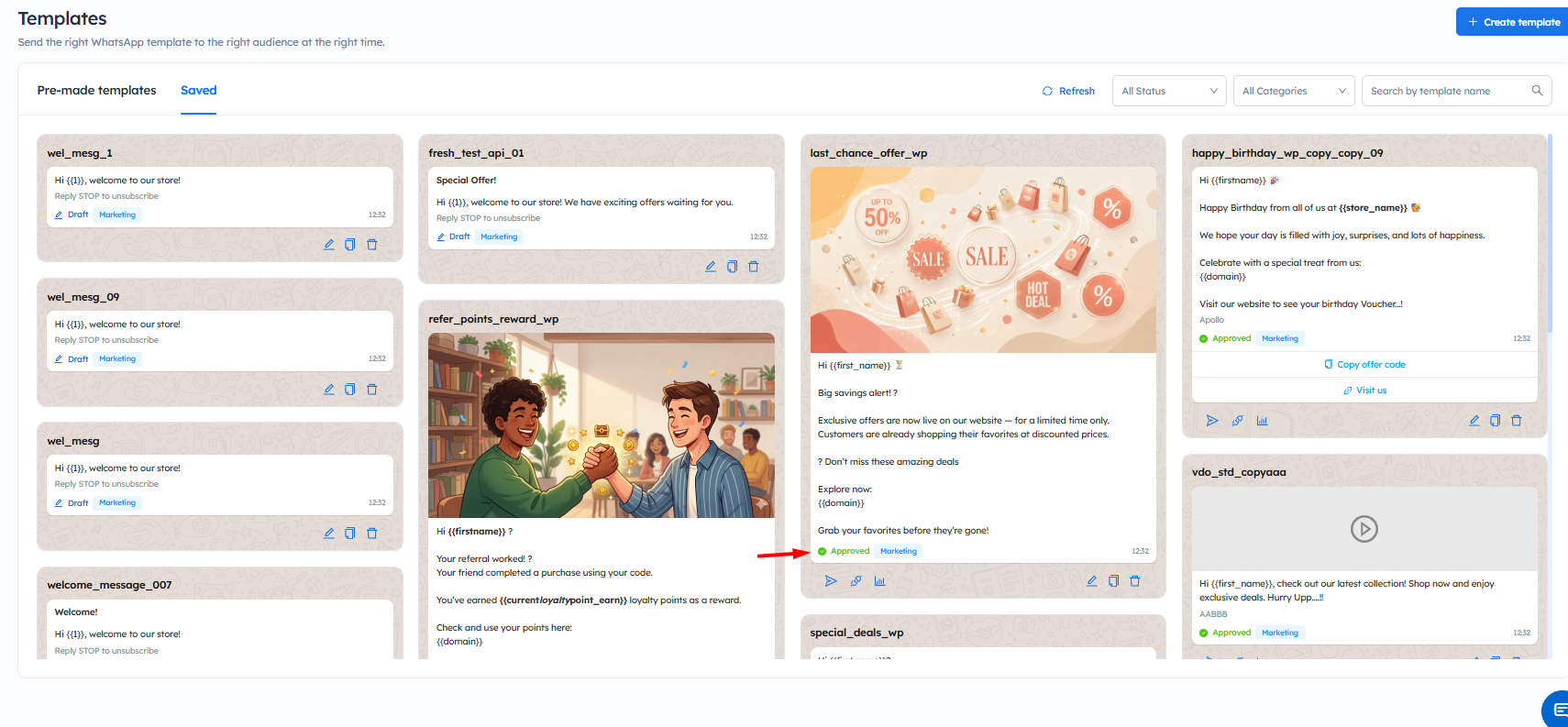 - Use Templates for Automation and Campaigns: Once approved, the template can be used in WhatsApp campaigns or automated workflows to send messages to customers.